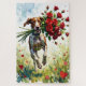 This dynamic watercolor illustration captures the enthusiasm of the German Shorthaired Pointer, seen running gracefully through a field while proudly delivering a huge bunch of long-stemmed red roses—a perfect expression of dog devotion this Valentine's Day!