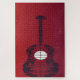 Belle soirée sur une jetée à thème musical. Ciel rouge avec lune à l'intérieur de la guitare.