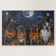 Libérez l'esprit éffrayant avec ce design d'Halloween étrange avec une meute de chiens sous un ciel sombre et clair de lune, entourée de chauves-souris volantes et de citrouilles brillants. Parfait pour ceux qui aiment une touche de plaisir effrayant avec leurs amis en fureur !