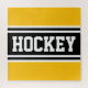 Ce design sportif amusant présente un texte HOCKEY audacieux à l'intérieur de bandes de course en noir et blanc contre un arrière - plan jaune vif. Les couleurs et le texte de ce design peuvent être personnalisés.