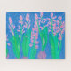 Jigsaw puzzle avec peinture florale décorative, fleurs de jacinthes roses fleuries avec feuilles verts frais sur l'arrière - plan bleu cobalt. Acrylique sur papier, 2020 © Julia Khoroshikh www.juliakhoroshikh.art #hyacinths #floralart #bohemianfloral #botanical #contemporaryfloral #floralpaint #indoorgarden #windowgarden #puzzles #jigsawpuzzle #zazzlemade