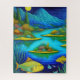 Le puzzle amusant et funky comprend le lac de montagne magique et l'art du poisson imprimé | L'IA a créé un art numérique d'imaginaire surréaliste.