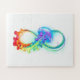 Symbole d'infinité multicolore avec méduse arc-en-ciel brillant décoré de longues tentacules sur l'arrière - plan blanc. Méduse arc-en-ciel.