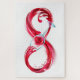 Infinity symbole of continuous stream of red pouring into glass glass glass on white background.
