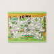 Une carte postale vintage et colorée de l'état de l'Iowa réutilisée sur un puzzle 8 X 10.