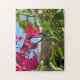 Puzzle de lézard de Pékin. Trouvez le lézard qui regarde pendant que vous travaillez sur ce puzzle. Il présente une photo très proche d'un jardin avec de belles fleurs de bougainvilliers roses et de la verdure, face à une clôture en brique. Oh - et un mignon petit reptile !