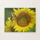Ce puzzle de jeu est montré avec une photo d'un joli tournesol et un joli papillon. Customisez cet objet ou achetez tel quel. Image stock