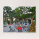 Joyeux Noël de la belle Hilton Head Island ! Le design de ce puzzle saisonnier est illustré d'une photo d'une cheminée éclairée dans le sable, capturée dans une station balnéaire haut de gamme. La scène de Lowcountry relaxante est tout décorée pour les vacances. Les décorations de Noël comprennent une couronne verte sur le gazebo, des arcs rouges sur l'arcade, des cloches dorées sur la clôture, des guirlandes éclairées sur la passerelle, un arc rouge sur la chaise adirondack, une couverture confortable et un sapin de Noël éclairé. Un grand panneau rouge "Joyeux Noël" dans le sable complète le coin salon festif. Le puzzle est disponible en différentes options de taille. Consultez notre collection complète de cartes Hilton Head Island, Lowcountry, Coastal, décoration de maison et cadeaux. Photographie et design par Glenda Motsavage.