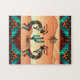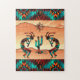 Profitez de ce Puzzle unique du sud-ouest de Kokopelli! Deux Kokopelli du sud-ouest jouent de la Flûte et dansent autour d'un cactus dans le désert sous le soleil dans le désert....Entouré d'un Arrière - plan Turquoise, Orange et Noir ! Design D'Art Original Par L'Artiste Kerry Miller.