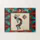 Personnalisez ce Puzzle Kokopelli Sud-Ouest unique "Un d'un genre" ! Il comprend un Kokopelli sud-ouest jouant la Flûte et dansant sous le soleil sur un Arrière - plan de grès...Entouré d'une frontière sud-ouest en Turquoise, Orange & Noir! C'est un "One of a Kind" Art Design original par l'artiste Kerry Miller.