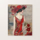 Une femme dans une robe rouge mélangé collage médiatique en utilisant l'éphémère vintage AI généré art