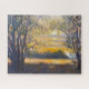 Un coucher de soleil extraordinaire où le coucher du soleil rencontre le brouillard sur la lagune Batiquitos à San Diego. Un tableau de Vicki Coe Mitchell, huile sur feuille d'or. Puzzle !