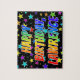 Ce puzzle dynamique, amusant, sur le thème de l'anniversaire présente le message "HAPPY BANTHDAY, LAWRENCE" avec des personnages ayant un motif dégradé coloré inspiré du spectre arc-en-ciel, ainsi qu'un motif arrière - plan de terrain étoilé animé. Un puzzle coloré comme celui-ci pourrait être une façon amusante de reconnaître l'anniversaire de Lawrence. [~Z0000468]