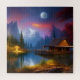 belle cabine en rondins nichée dans une crique isolée entourée de montagnes, baignée de lumière lune. Art généré par Ai par minx267