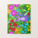 Puzzle Le chat de bande dessinée dans le jardin fleurit