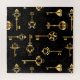Seamless pattern of antique, gold and silhouette keys on black background.