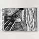 Puzzle Le Cri. Version noir et blanc du célèbre tableau de Munch avec le nom de ce chef-d'œuvre artistique ainsi que le nom de l'artiste imprimés en bas. Ce grand puzzle mesure 20x30 pouces et est composé de plus de 1000 pièces.