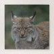 Un lynx se reposant sur du bois et se regardant droit sur vous. Le chat avec les touffes de cheveux sur ses oreilles.