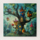Puzzle des maisons dans un grand arbre fantaisiste. © Jigsaw Wonderland sur Zazzle. Un groupe de petites maisons fantaisistes perchées sur ou suspendues aux branches et au tronc d'un grand arbre.