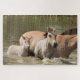 Przewalskis Horse ou Takhi (Equus ferus przewalskii) dans le centre animalier du parc national Hortobagy. Mare avec poulain traversant une rivière, Pentezug Puszta, Hongrie | DanitaDelimont.com | Martin Zwick | EU13 MZW0593