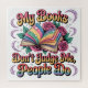 Un design rétro plein de vie et coloré présente un livre ouvert, des roses, des formes de croissant et des étoiles. Le texte en gras dit : "Mes livres ne me jugent pas, les gens le font." Ce design unique est disponible sur une large gamme de produits.