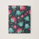 Step into a world of nocturnal beauty with the Midnight Meadow puzzle. This striking design features a seamless folk-art pattern of vibrant magenta tulips and soft teal bellflowers set against a deep navy blue background. Accented with delicate pink blossoms and whimsical golden swirls, the high-contrast color palette creates a rich, tapestry-like effect. The repeating floral motifs and intricate linework offer a rhythmic and satisfying challenge for puzzle lovers, making it an elegant statement piece for any home.