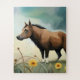 Puzzle Mignonne poney brun dans le champ floral