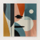 Paysage abstrait d'une scène désertique aux lignes et aux formes dans les tons marron, orange, turquoise, beige, bronzé et noir.