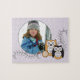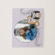 Le puzzle comporte une paire de hiboux gais dans le cool, couleurs modernes parmi les vignes florales. Ajoutez votre propre photographie pour un souvenir doux.