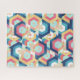 Un motif géométrique d'été dynamique, composé d'hexagone, de carrés, de cubes, de lignes triangles et de bandes de formes et de traits d'or. Cette illustration motif graphique abstraite, symétrique, créative, mode tendance design décoratif est parfait pour la décoration maison et l'usure quotidienne. Rempli de moutarde jaune, mangue glacée, corail vivant, crêpe aux bleuets, verre de carnaval, bleu aqua, bleu foncé et blanc couleurs vives heureux. Un design élégant, tendance, gai, joyeux, joyeux, image d'art original.