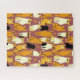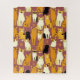 Puzzle dans un motif ludique de chats stylisés dans des tons chauds de gingembre, crème, noir et marron sur un arrière - plan caramel brun. Chaque chat a sa propre expression et ses marques mignonnes, avec de petits empreintes de pattes éparpillés partout.