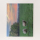 Puzzle Moutons en champ avec coucher de soleil