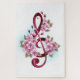 Pink treble clef with delicate, detailed pink Japanese cherry blossoms against white background painted over with light blue paint Blooming pink sakura.