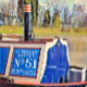 Un design d'art rétro d'un bateau de plaisance amarré.