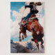 NC Wyeth était un artiste américain connu pour ses peintures et illustrations réalistes. Au cours de sa vie, Wyeth est devenu l’un des plus grands illustrateurs d’Amérique et il a créé plus de 3 000 tableaux et illustrations. Ses premiers voyages dans l'ancien Ouest ont inspiré des images de cowboys et d'Amérindiens qui ont dramatisé la frontière. Ce tableau s'appelle "Bucking" et représente un cow-boy chevauchant un bronco sauvage.