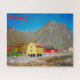 Scène côtière avec montagnes et maisons en bois coloré à Svolvaer, Îles Lofoten, Norvège