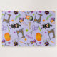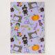 Un motif d'Halloween pas si éffrayant sans couture avec poupée zombie, sorcière, machine à coudre, coussin citrouille, fil à coudre, boutons etc