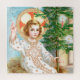 Détail d'une image charmante et vintage de l'Enfant Christ livrant personnellement un arbre de Noël éclairé aux bougies à une maison qui s'est préparée à sa venue. Ici, Jésus, assis sur sa crèche remplie de paille, porte une robe blanche décorée d'une croix d'or et d'étoiles. Au centre de la croix sur sa poitrine se trouve un quatrefoil contenant l'IHS, l'un des plusieurs monogrammes grecs de son nom. Il lève sa main droite pour bénir et tient l'arbre de Noël debout à sa gauche. Parfait pour engager toute la famille dans une activité collaborative pendant l'Avent! + Crédit image : Détail de "Gloria in excelsis Deo", empreinte dévotionnelle en chromolithographie dorée, fin du 19ème siècle, début du 20ème siècle, éditeur original (peut-être allemand) inconnu, de la collection privée du concepteur d'éphémère religieux.