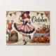 Octobre Retro Pin-Up Girl Jigsaw Puzzle, Halloween sorcier Vintage, Festive Fall Puzzle Cette image présente une charmante pin-up fille habillée comme une sorcière, posant de façon ludique au milieu d'un cadre festif d'Halloween avec des citrouilles, potions, et décorations saisonnières. Son sourire enchanteur et sa tenue élégante lui confèrent le plaisir et la magie d'octobre, évoquant un esprit d'Halloween vintage avec une touche nostalgique.