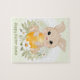 Mignonne lapin de Pâques avec un puzzle d'oeuf jaune. Personnalisez facilement le texte. - Kate Eden Art.