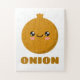 Promouvoir le développement cognitif avec ce puzzle d'apprentissage précoce qui présente un grand personnage d'oignon mignon avec le mot "Oignon" en gras.
