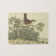 Cette conception de puzzle d'apparence vintage présente une représentation d'un oiseau perché sur une branche d'arbre.