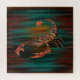Les ondulations sous-jacentes sont éclairées par des tons de terre reflétant la couleur sud-ouest de ce puissant Roi Scorpion marchant sur le dessus de l'eau. Couleurs palette de bleu turquoise et vert, noir, jaune, orange, or et rouge.