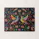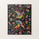 Profitez de cette unique "One of a Kind" Mexicaine Otomi Jigsaw Puzzle Puzzle! Il présente une impression Otomi mexicaine avec des oiseaux et des fleurs aux couleurs vives...sur un Arrière - plan noir !