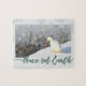 Photo adorable d'un canard blanc avec des canards colverts dans l'eau glacée avec la citation Peace on Earth dans une police de caractères tendance. Ce puzzle a une couche de flocon de neige douce et hivernale, cadeau parfait pour les amoureux de la nature.