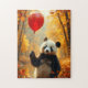 Puzzle Panda Bear avec un ballon rouge à l'automne