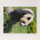 Panda géant (Ailuropoda melanoleuca) posé sur une pierre