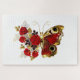 Puzzle Papillon de fleurs rouges aux roses rouges