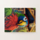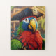 A vibrant parrot puzzle showcasing a colourful parrot perched in a lush jungle setting, surrounded by exotic flowers and greenery