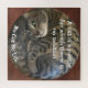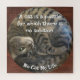 Un chat tigré gris mignon et unique, recroquevillé, peint sur la pierre. Citations humoristiques de chat des deux côtés, « Pas de chat, pas de vie » et « Un chat est une énigme pour laquelle il n'y a pas de solution. »